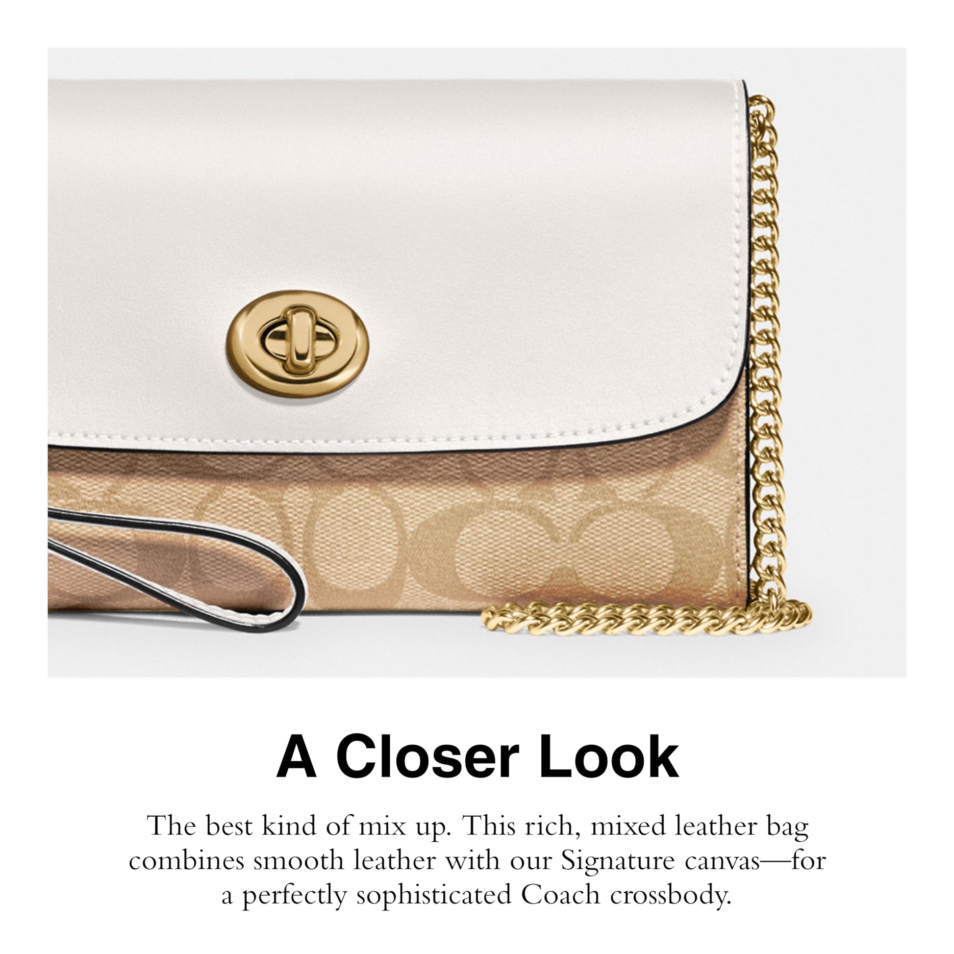 Our Signature Canvas: The best kind of mix up. This rich, mixed leather bag combines smooth leather with our signature canvas - for a perfectly sophisticated Coach crossbody