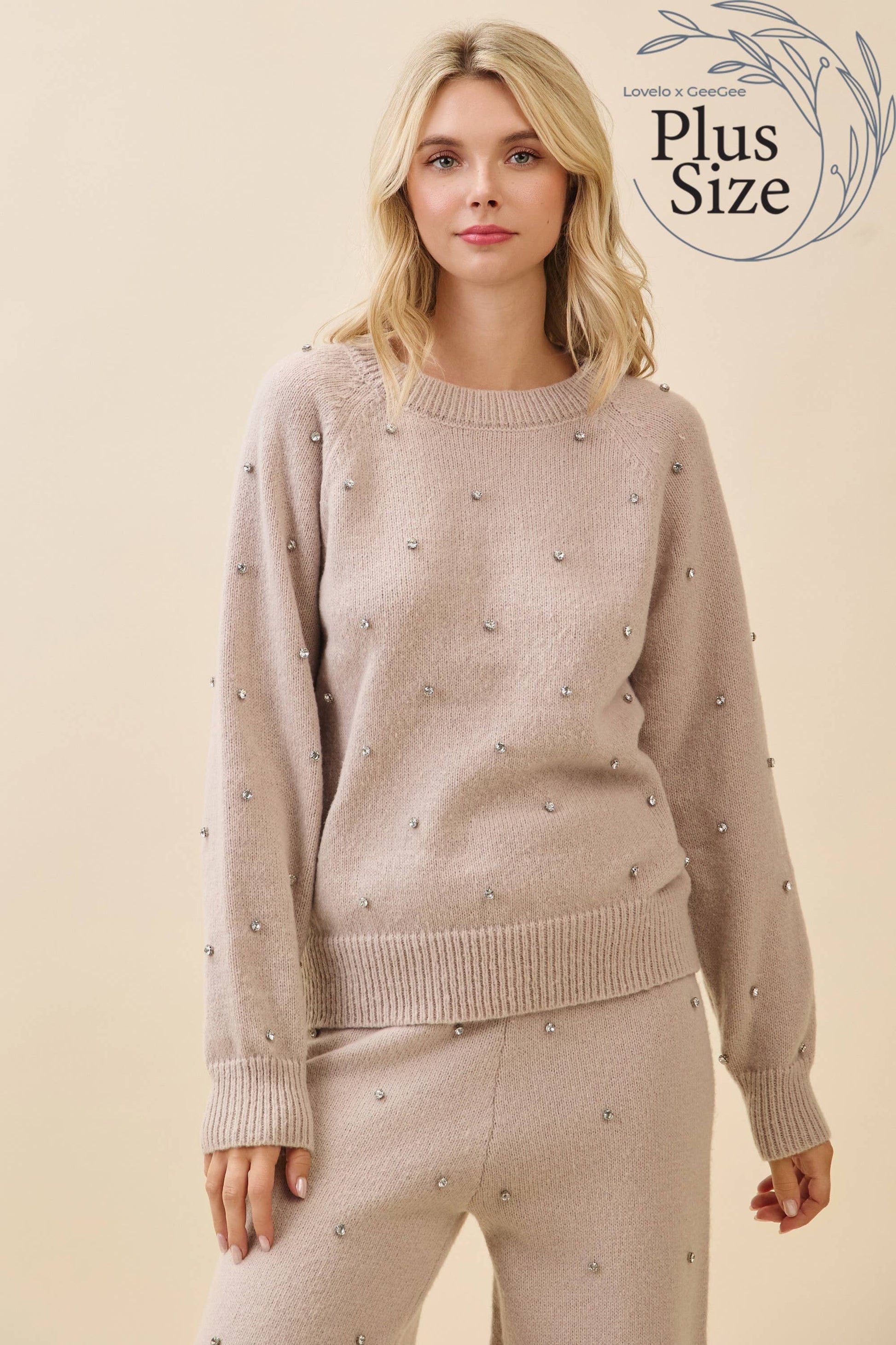 GeeGee x Lovelo - Plus Rhinestone Embellished Knit Sweater OT51845PL