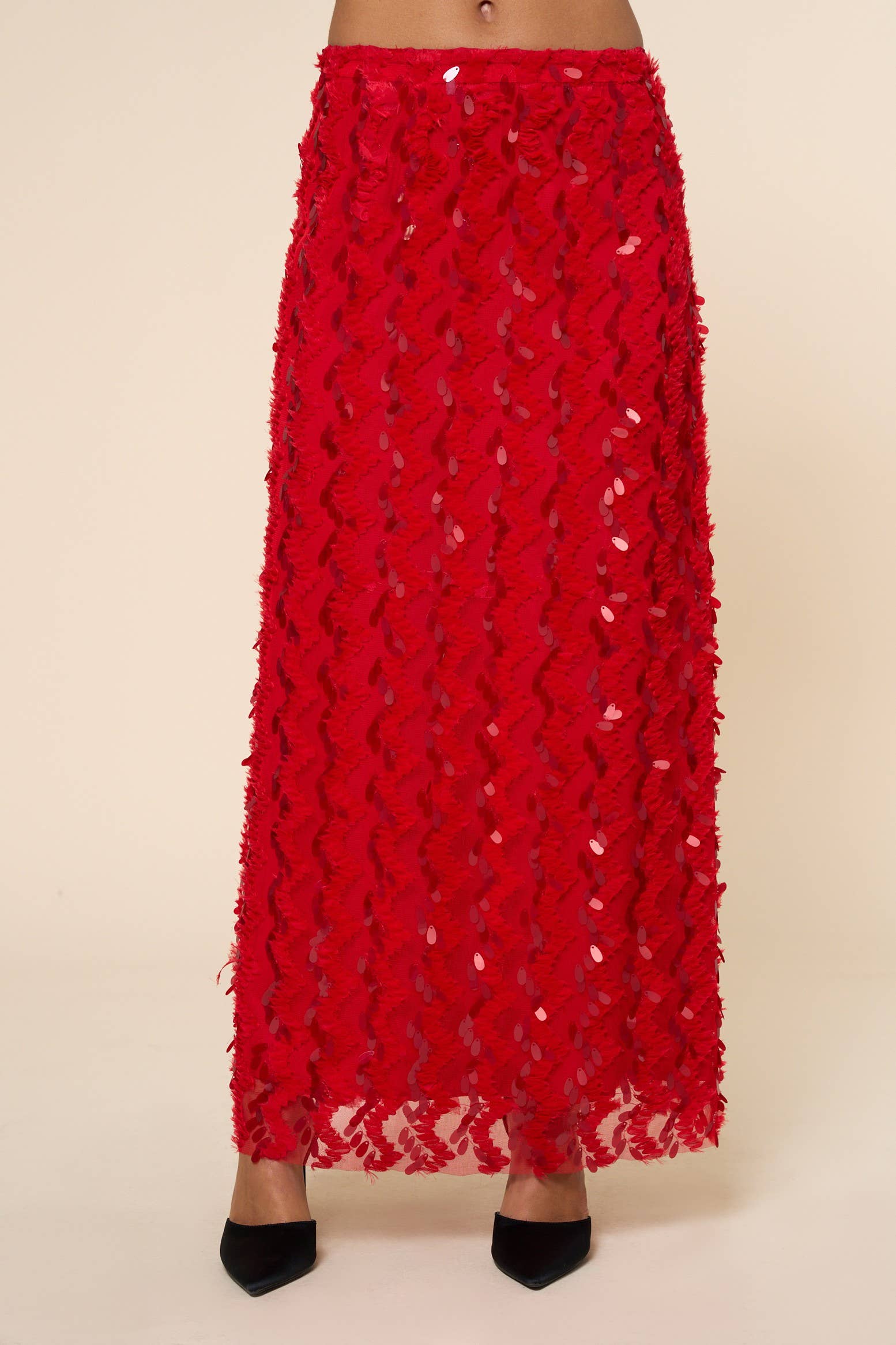 Catch the light with every step in this sequin maxi skirt, where effortless glamour meets modern edge. The full-length silhouette glides with movement, while all-over sequins offer a bold yet wearable shimmer. Style it with a crisp button-down for a high-low contrast or keep it sleek with a fitted top-either way, you're making an entrance.