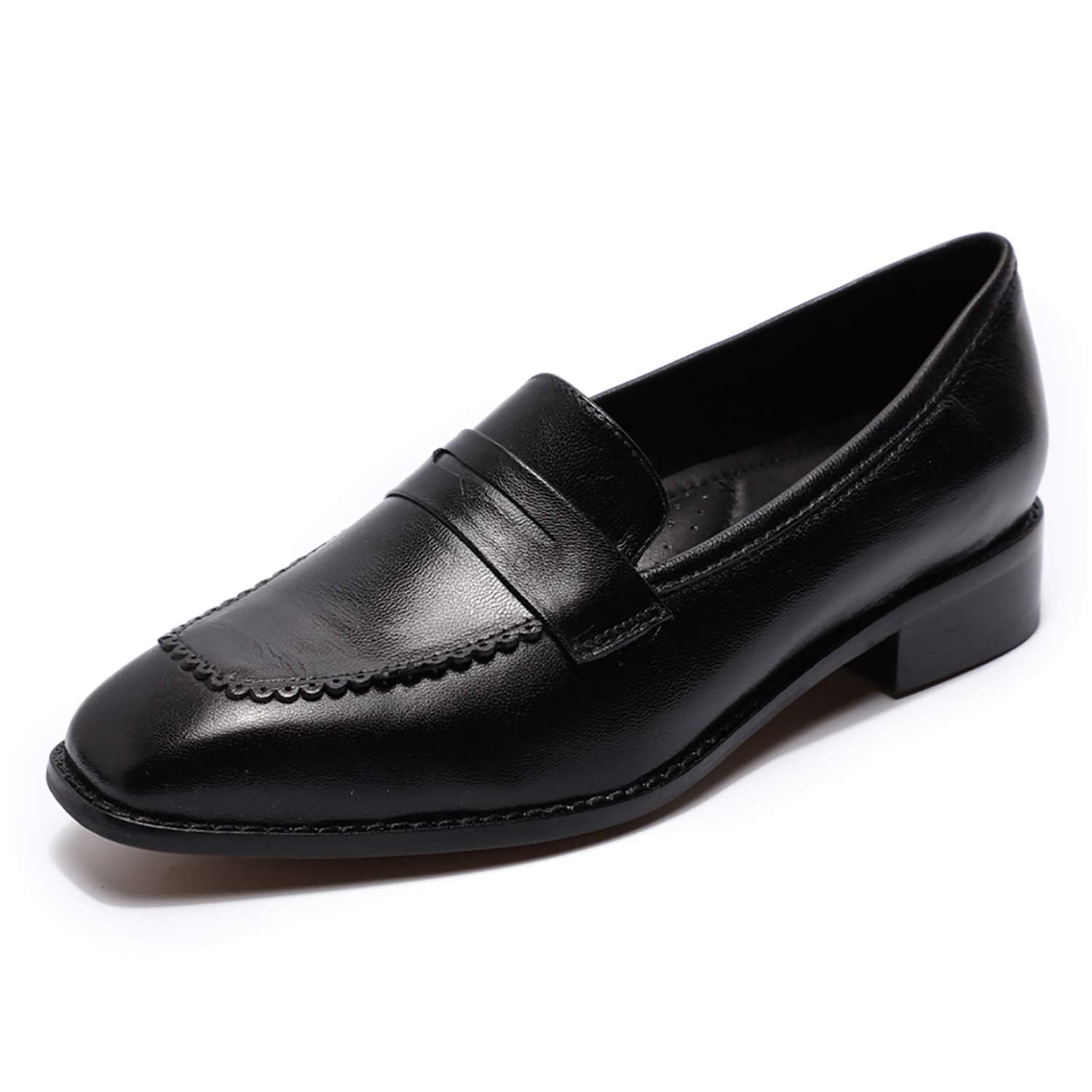 Mona flying Women's Top Leather Square Toe Penny Loafer Dress Casual Slip on Flat Office Work Shoes for Ladies