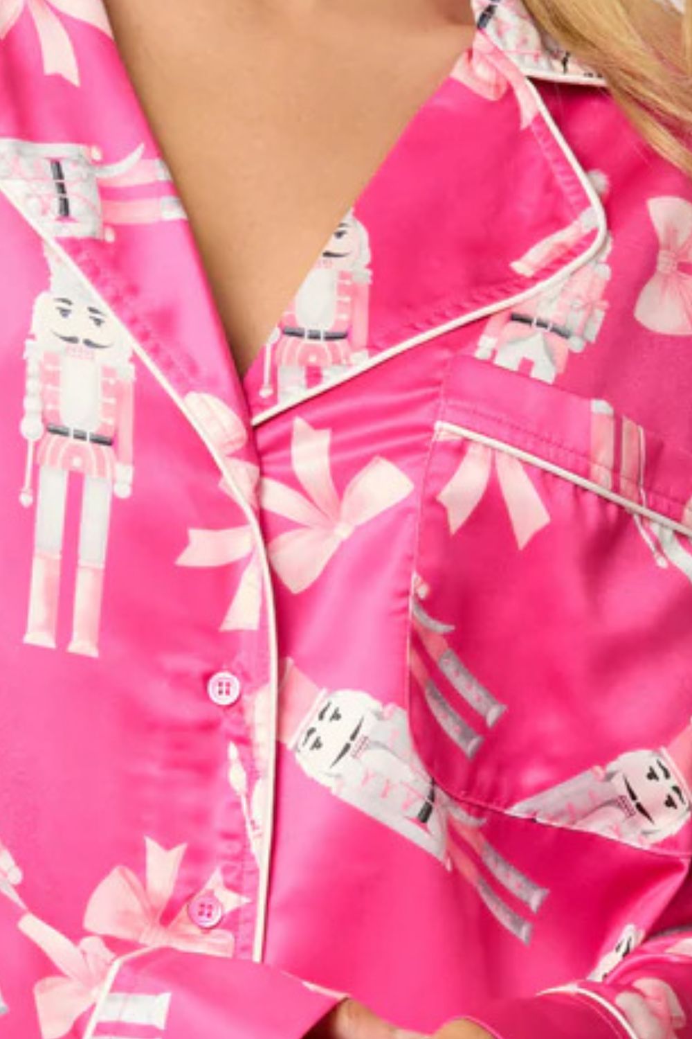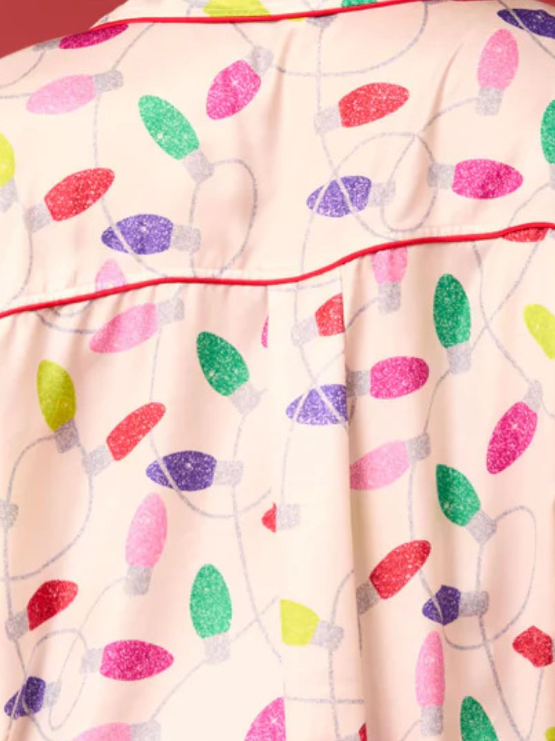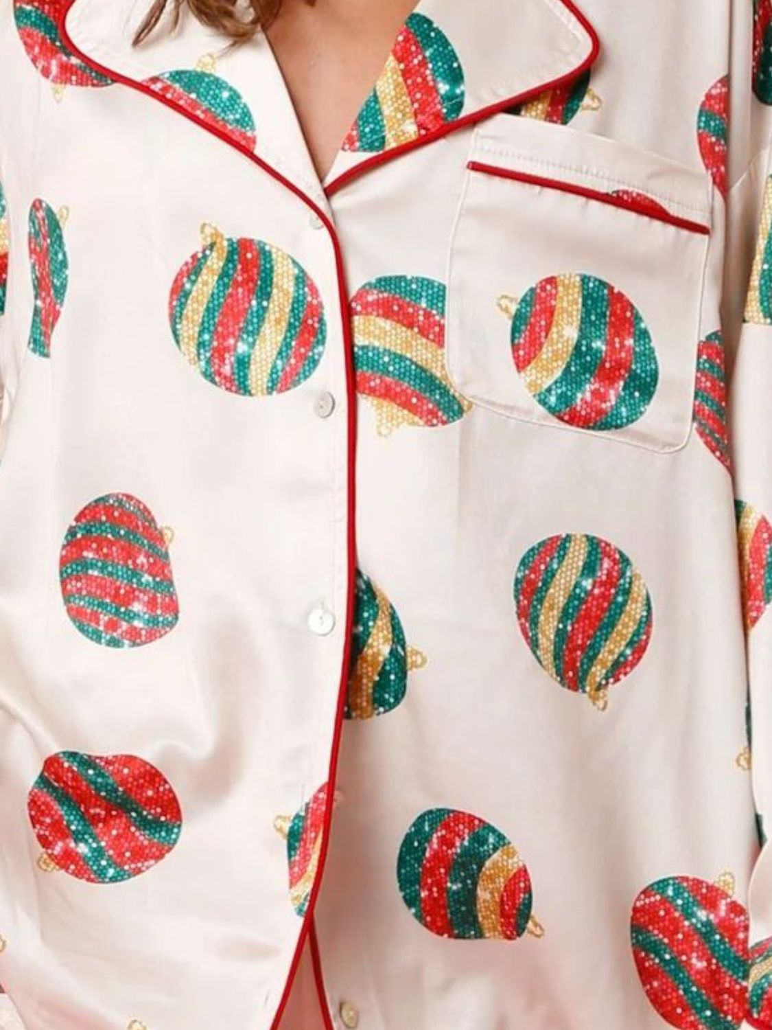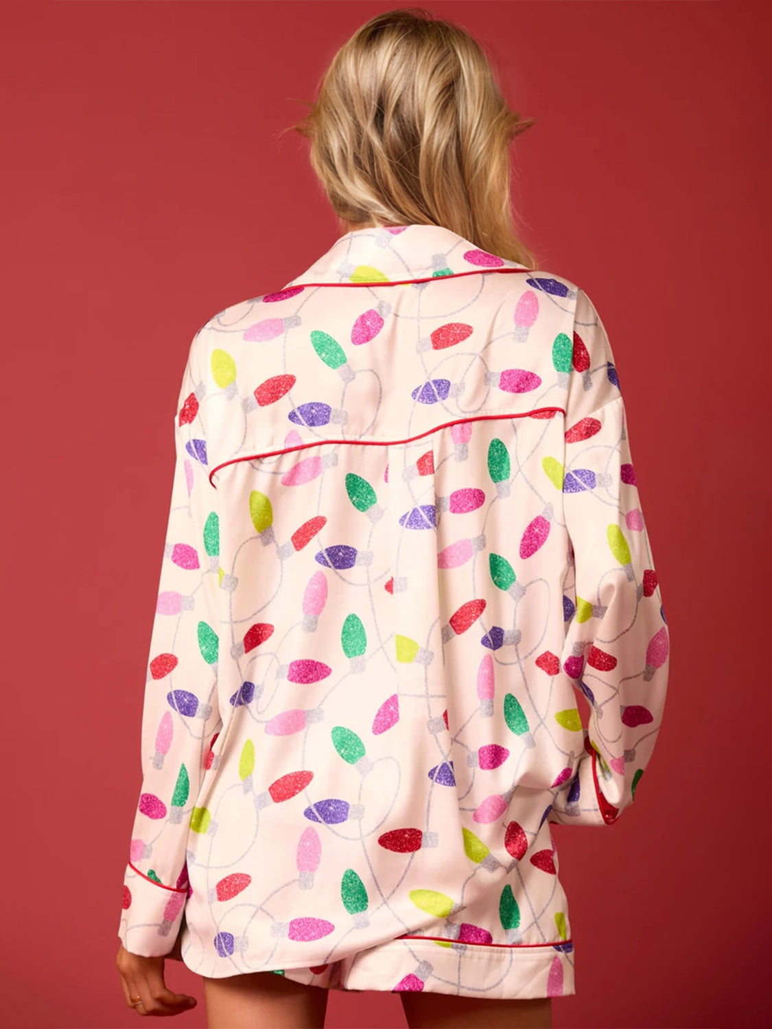 Printed Collared Neck Long Sleeve Top and Shorts Set