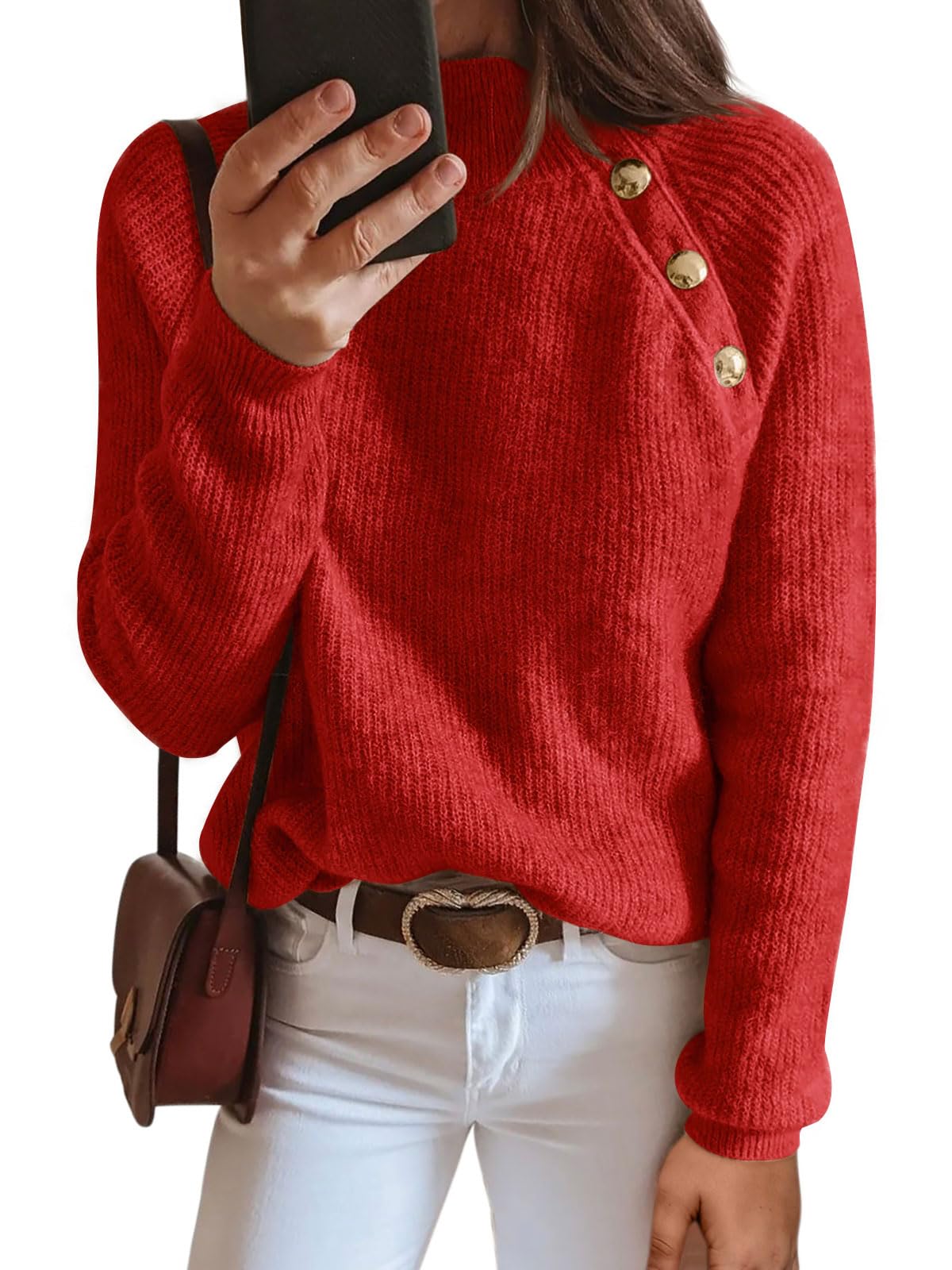 Lueluoye Womens Mock Neck Pullover Long Sleeve Casual Tops with Metal Buttons